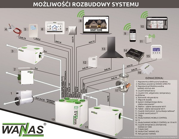 Wanas to Polski producent z fabryką w Rzeszowie. To sprawdzony wykonawca z wieloletnim doświadczeniem w produkcji. Posiadają oni całą gamę rekuperatorów własnego projektu. Ich urządzenia nie odstają w niczym w porównaniu z zagranicznymi producentami. Nie wprowadzają innowacji, ale doskonale naśladują obecne trendy i szybko adoptują nowoczesne rozwiązania. Ich najnowsze jednostki wyposażone są w XF system. System ten odpowiada za płynną regulację i dostosowuje wydajność centrali wentylacyjnej do aktualnych warunków. Zapewnia to stałą zaplanowaną wydajność przez cały czas pomimo zmiennych warunków zewnętrznych (temperatura, wilgotność, ciśnienie) i wewnętrznych jak np. zabrudzenie filtrów. Dodatkowo posiadają w ofercie takie elementy jak nagrzewnice/chłodnice, nawilżacze, wymienniki entalpiczne, moduły do gruntowych wymienników ciepła, osprzęt wentylacyjnych w postaci rur, przewodów, skrzynek rozprężnych i rozdzielczych. System automatyki jest mocno rozbudowany.